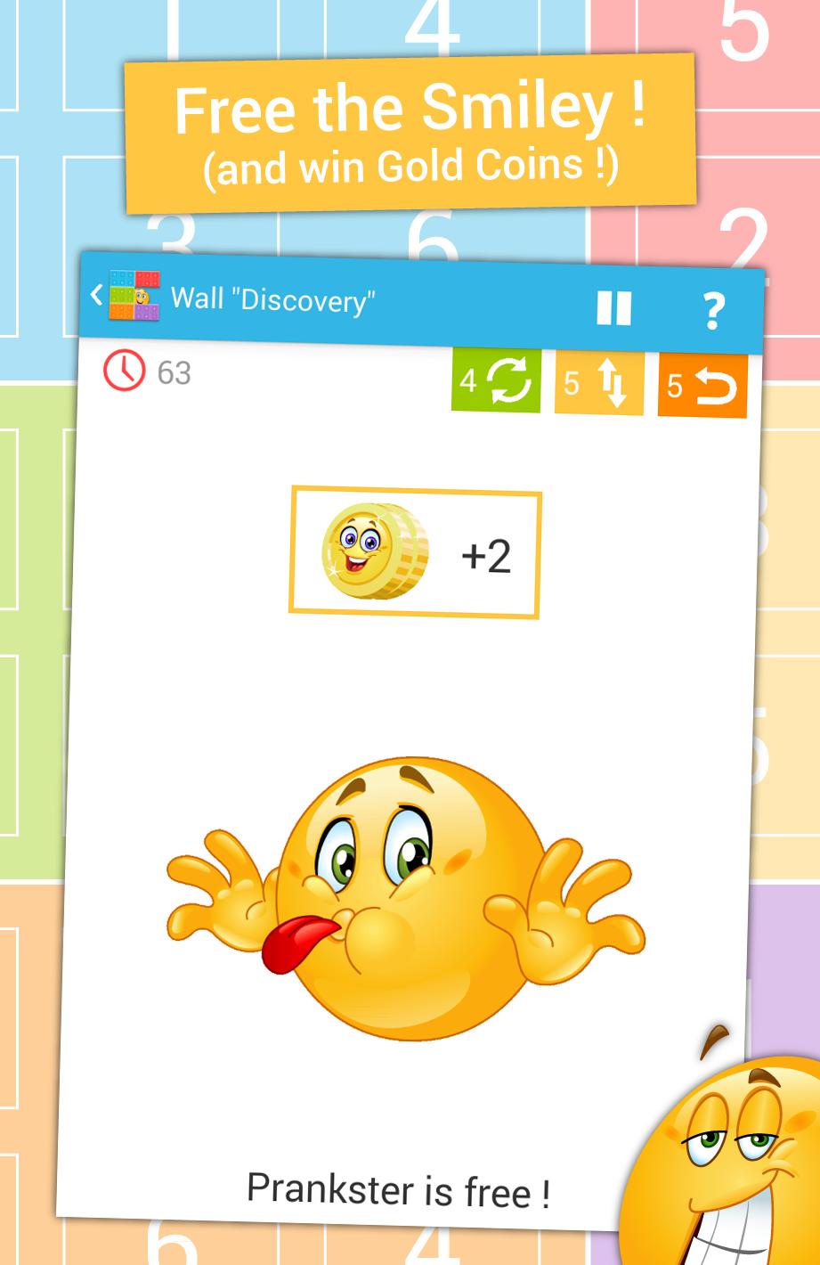 壁はスノクに似たパズルゲームですが、1つではありません!目標は、壁を破壊し、スマイリーを解放するために6色セットを改革することです!壁は英語で無料のゲームで、すべての年齢がアクセスでき、以下が含まれます。