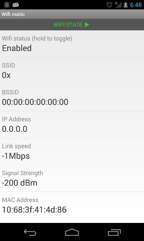 使用した可能性があります:Wapdroid、Wifi Onoff、Auto Wifi Toggle、WiFi Auto On、Auto WiFi Off、WiFi、WiFi Lock、WiFi Fixe、Wake Lockでロック解除