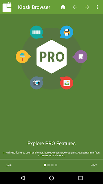 Designed for use on any Android device and is great for creating public kiosks, interactive digital signage etc.... Lock down the user interface so that the end-user can only access your defined webpage(s) and can't adjust Android system settings or gain access to other applications.