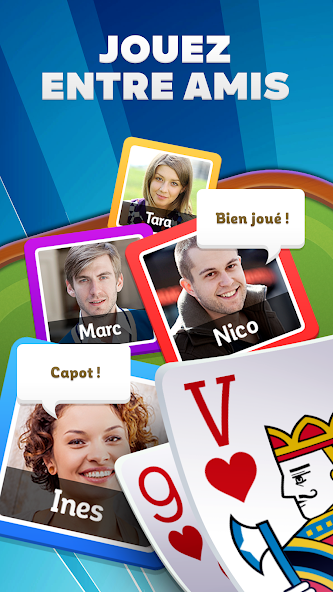 다른 보너스 덕분에 무료 멀티 플레이어 Coinche Belote 게임의 수를 곱하십시오.
