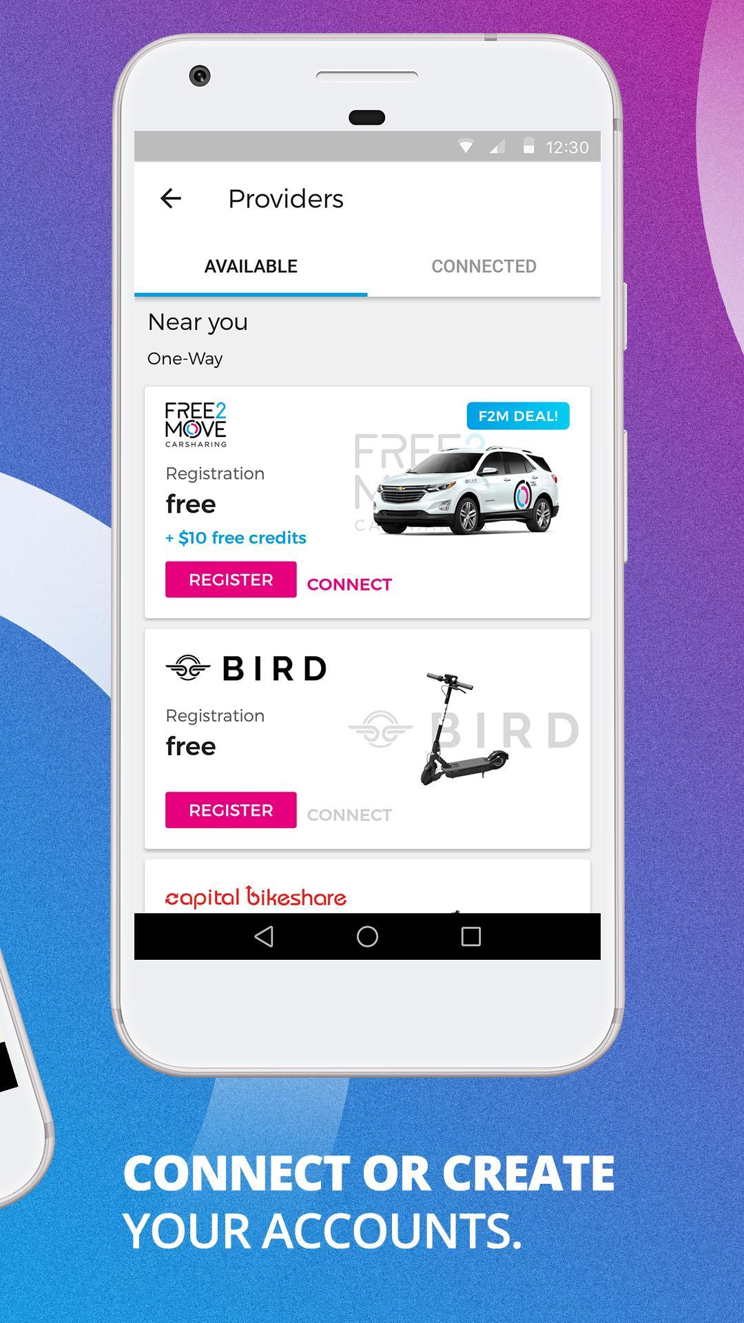 무제한 이동성 : 주문형. 모든 자동차, 스쿠터 및 자전거 공유 서비스에 액세스하십시오.