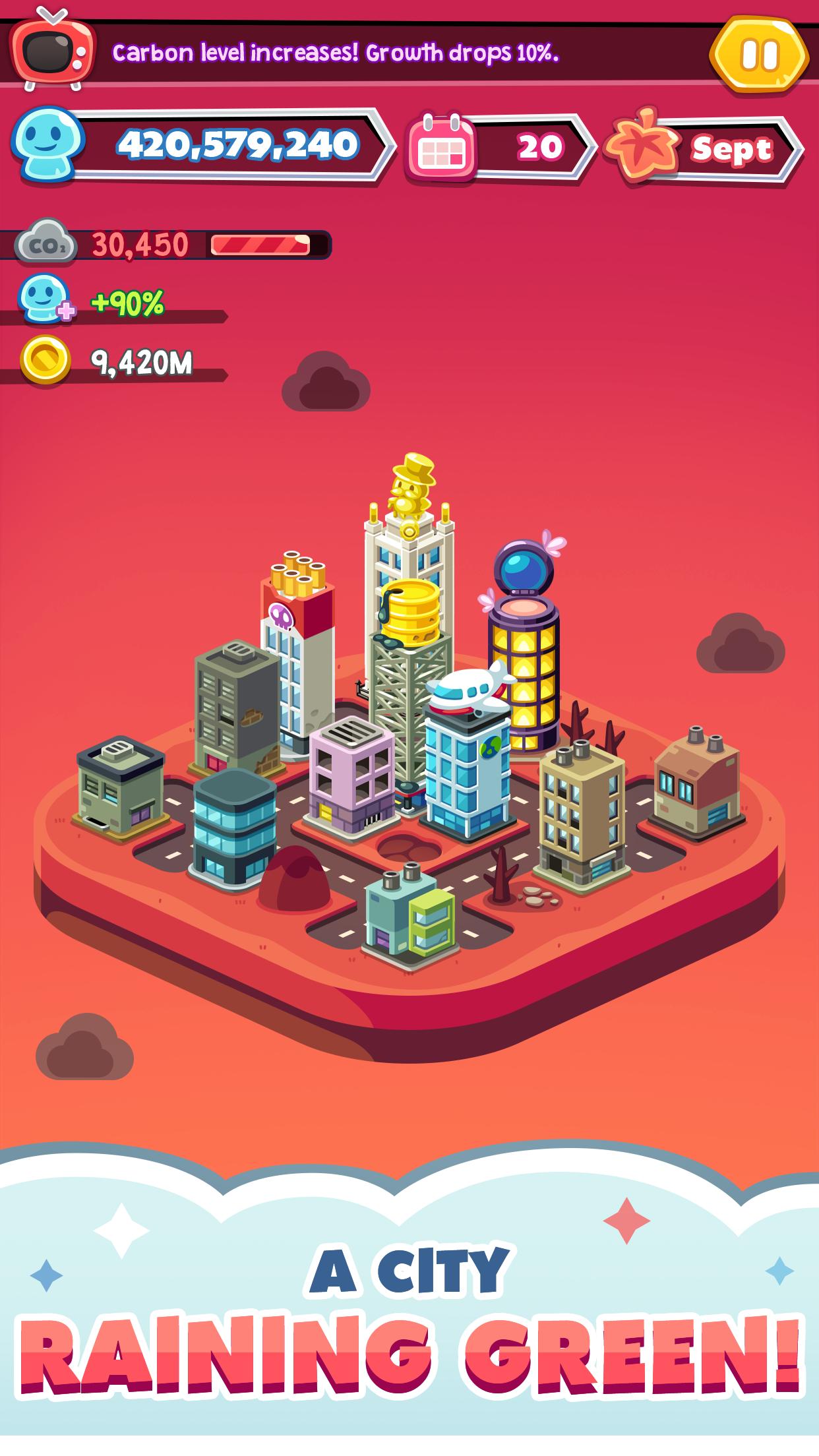 재생 가능 에너지, 재활용, 대중 교통 등에 투자하거나 탄소 오염 비용으로 인구 증가와 돈을 우선 순위로 삼으십시오. 현명한 결정을 내리면 균형을 잡을 수 있고 시민들이 집에 전화하기를 좋아하는 낙원을 만들 수 있습니다!