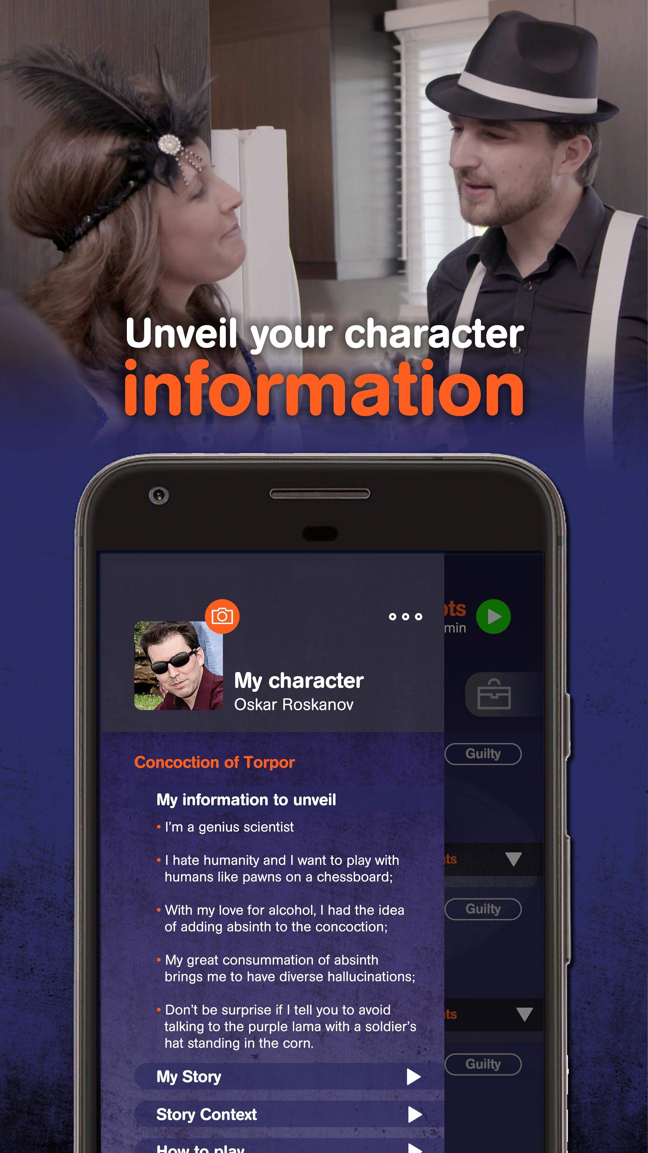 당신의 성격을 구현하고 비밀을 발견하십시오. 실시간 장난을 경험하십시오! 다른 참가자에 대한 정보를 수집하고 앱에서 보낸 단서를 분석하여 자신의 조사를 수행하십시오. 놀라운 이벤트 전환에 참여하고 독점적 인 사진 작가가 되십시오!