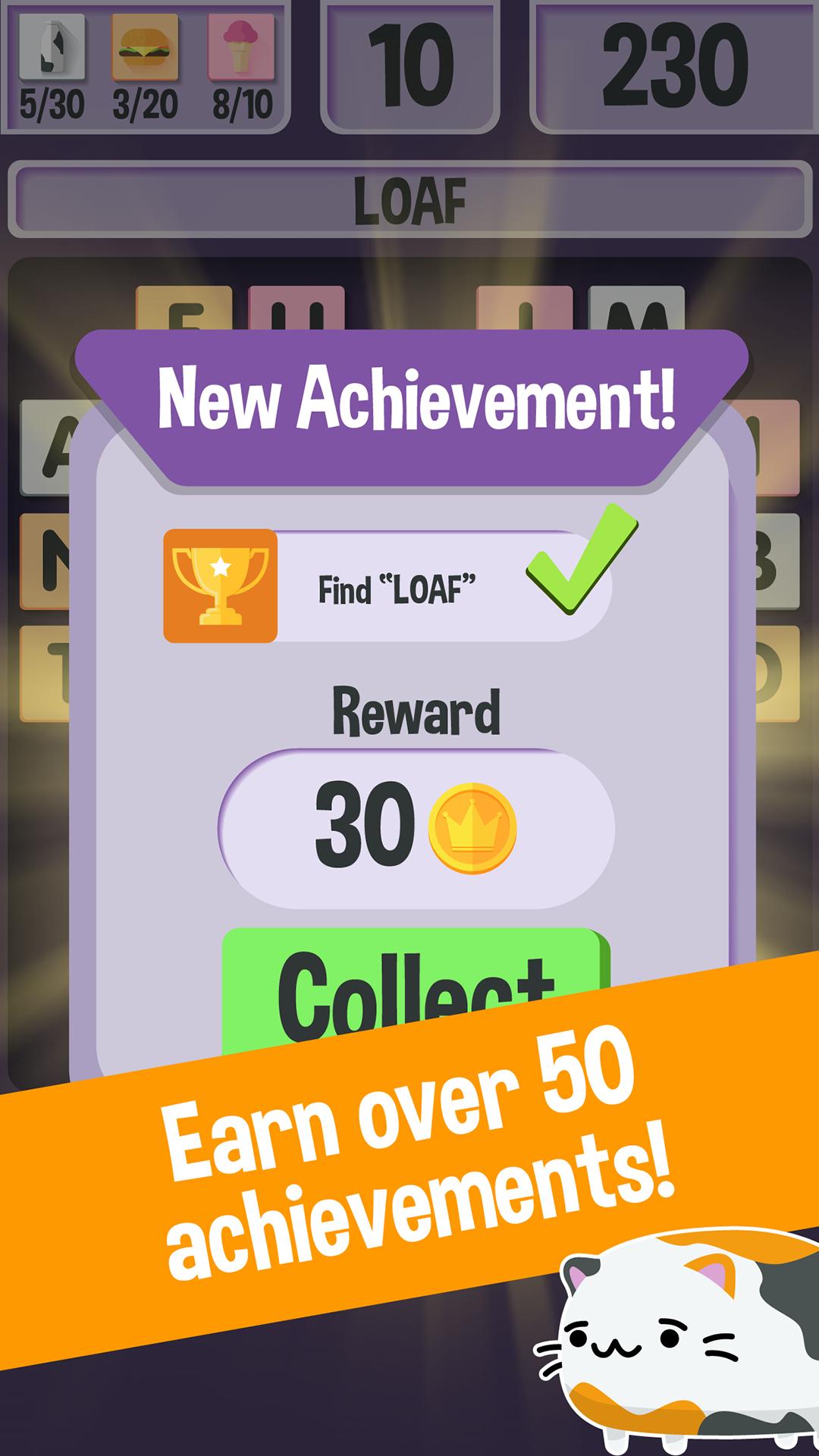 Word Quest Kitty Crave Saga 음식을 좋아하는 고양이에 대한 귀엽고 코믹한 단어 게임입니다! Loaf 씨가 맛있고 맛있는 단어를 찾기 위해 그의 탐구를 도와주세요! 우유, 버거 및 아이스크림 타일을 모아서 지방과 행복을 유지하십시오. 부스터를 사용하여 풍미있는 간식을 모으도록 도와주세요!