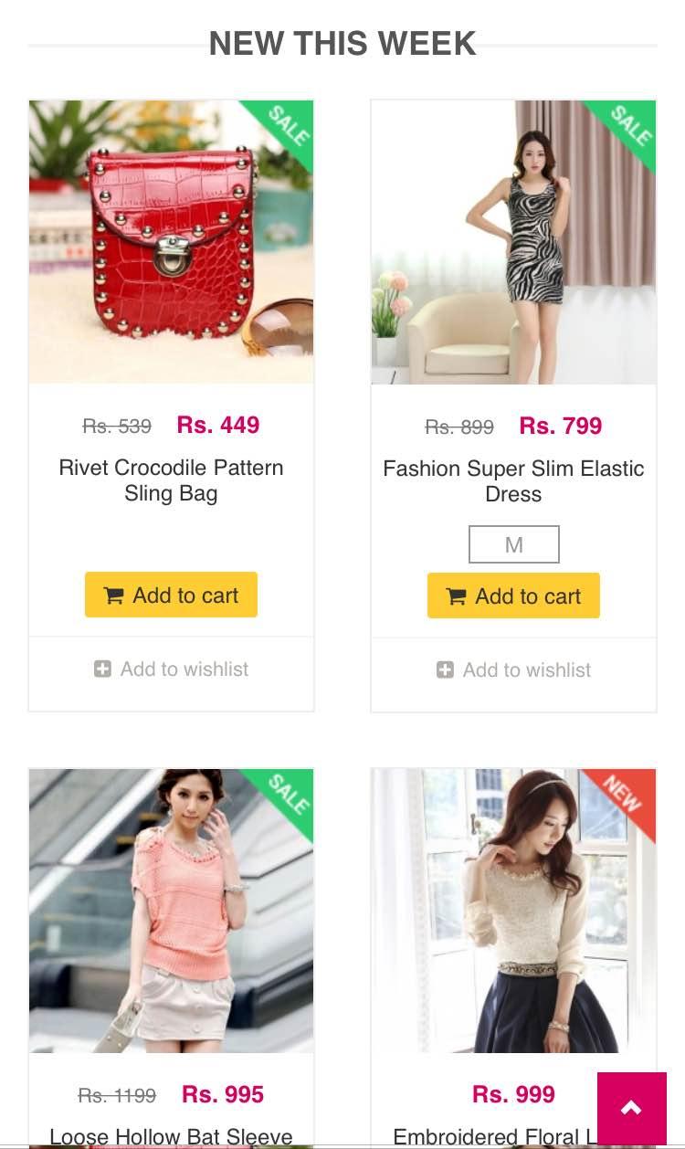 Online Shopping of Women Fashion Apparel Cloths, Tops, Jackets, Shirts, Dresses, Leggings, Skirts, Sweaters, Cardigans, Shawls, Lingerie, Bras, Panties, Bikini, Sleepwear, Handbags, Sunglasses, Jewelry, Bracelet, Anklets, Necklace, Earrings.
