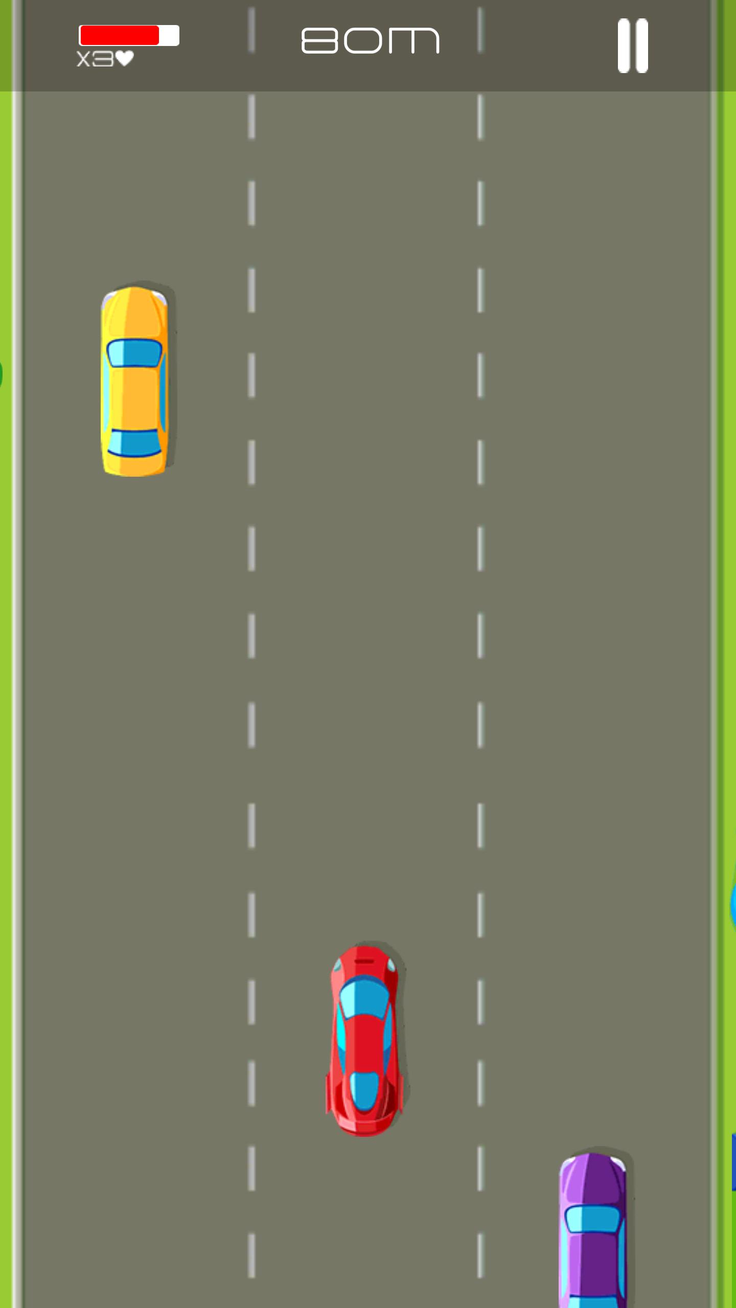 The gamer is given three tracks (traffic lines); by swiping or tapping the tracks he moves to the left or to the right. The task is to avoid/overtake the vehicles racing ahead of him.