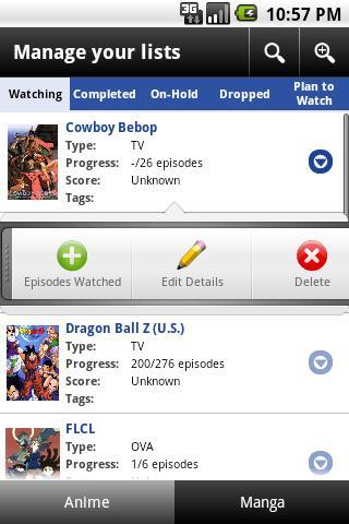 Check http://failtern.wordpress.com for more info. You need an account at myanimelist.net to use this app.