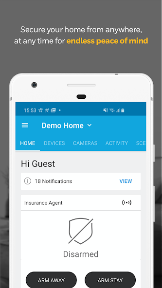 • See the real-time status of your security system