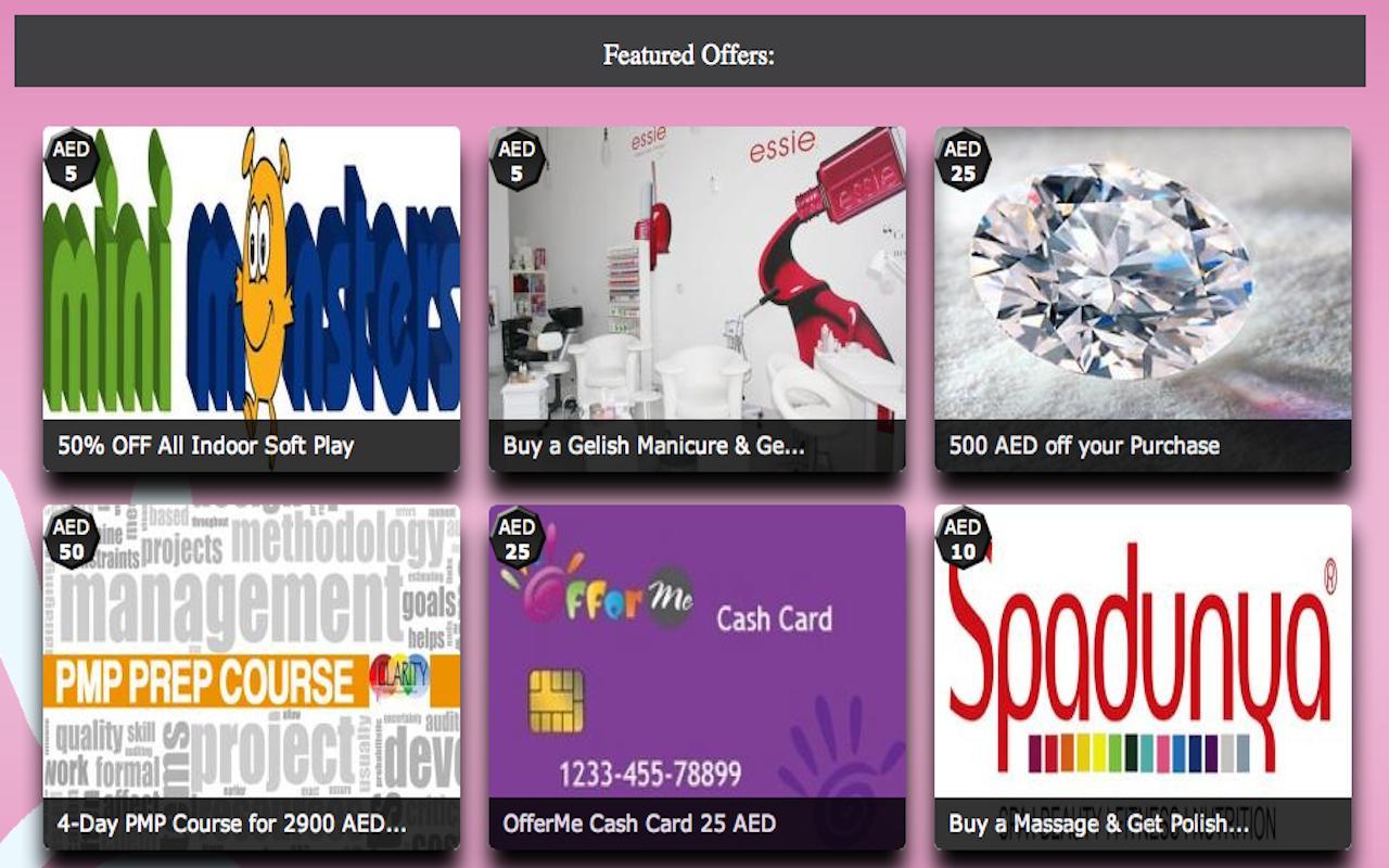 Launched in November 2012 in the United Arab Emirates, as part of the OfferMe Group, OfferMe FZ LLC is designed to provide our customers countless offers at numerous retailers, dining outlets, leisure and entertainment venues and service partners in the UAE. We offer our customers an innovative and simple new approach to indulge in the limitless opportunities to entertainment without emptying their wallets.