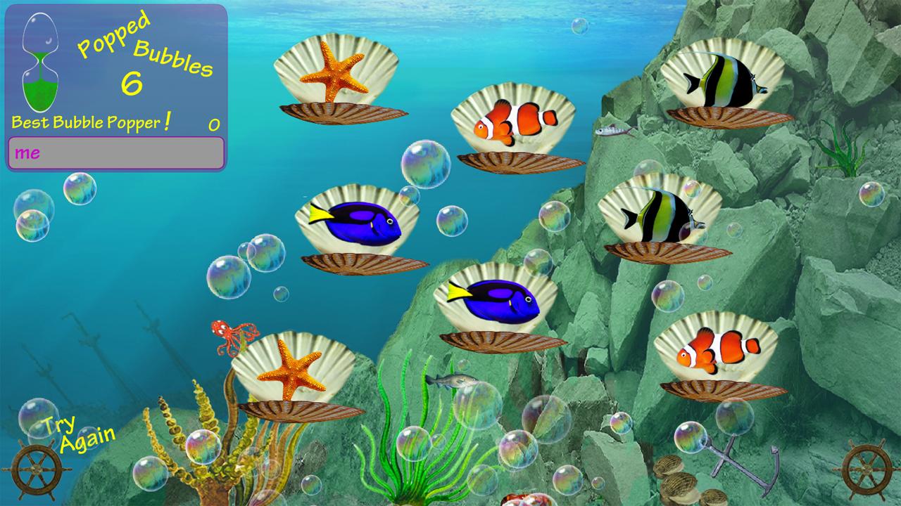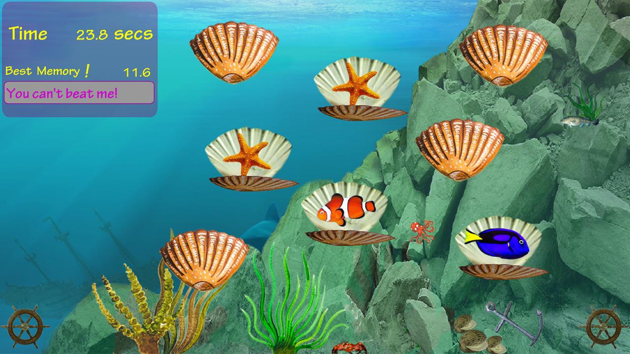 It has an underwater theme with a selection of different fish hidden behind every scallop shell. You are playing against the clock and the player with the fastest time can enter their name in the best score panel.