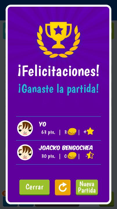 With each game won get coins and prestige level. Your level used to brag to your friends, while coins are used to add time to your shift or increase the number of letters that can risk.