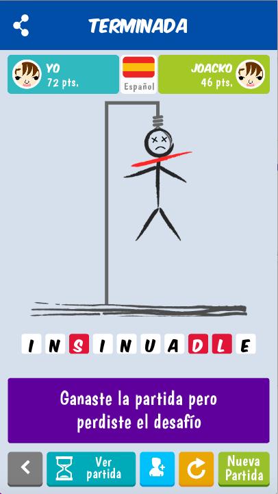 When you lose a game, you can use a coin to challenge your friend to a rematch. The rematch is a game of hangman, and the winner three coins distributed each game as prize.