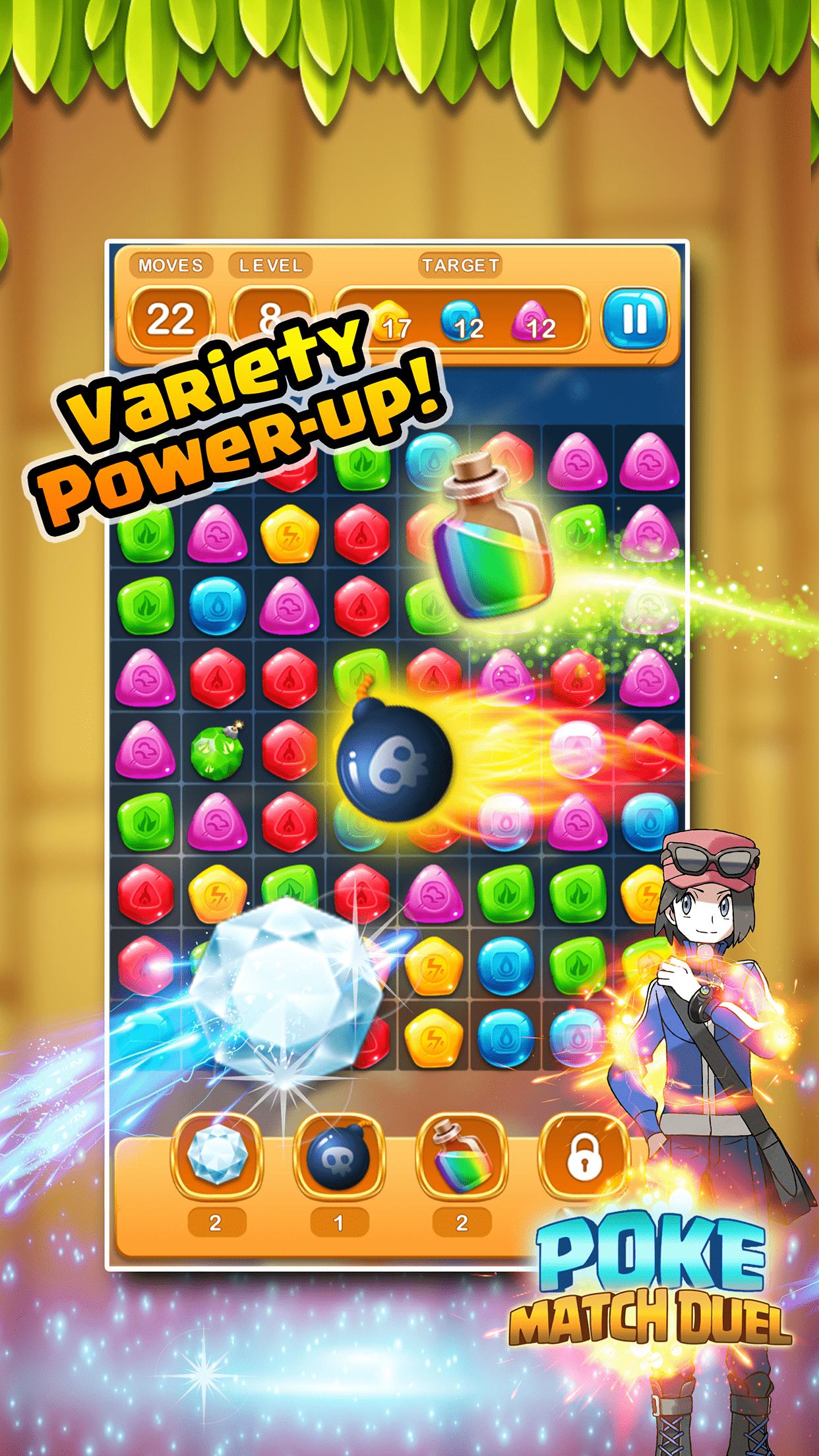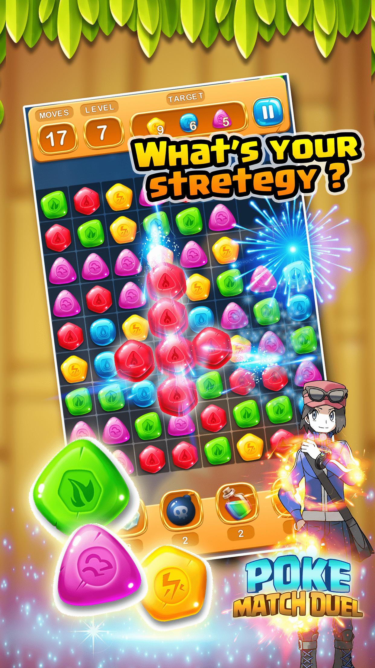 Poke Match Duel - a strategy match game with superb power pocket gem ball. Match all the same powerful colour gem to gain real fight energy.