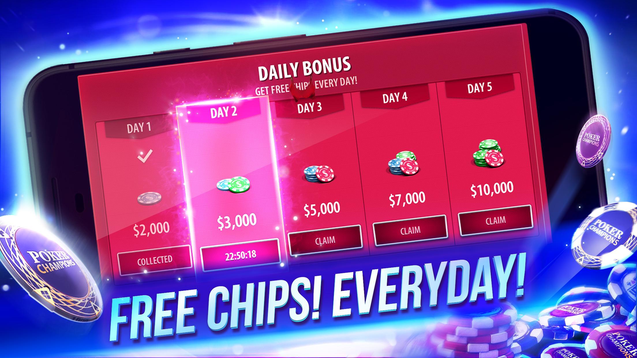 - Daily Rewards: Play Poker Champions daily & get free chips!