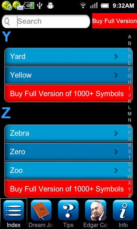 • Índice de mais de 350 símbolos de sonho (compra no aplicativo para comprar os mais de 1000 símbolos)