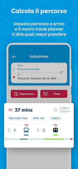 - Calcule a rota: diga -nos para onde você deseja ir e nosso planejador de viagens dirá exatamente o que significa seguir, incluindo ATAC e Trenitalia.