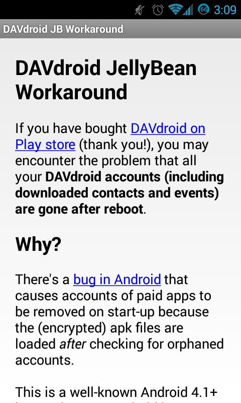 Solução alternativa para: as contas Davdroid desaparecem após uma reinicialização/atualização