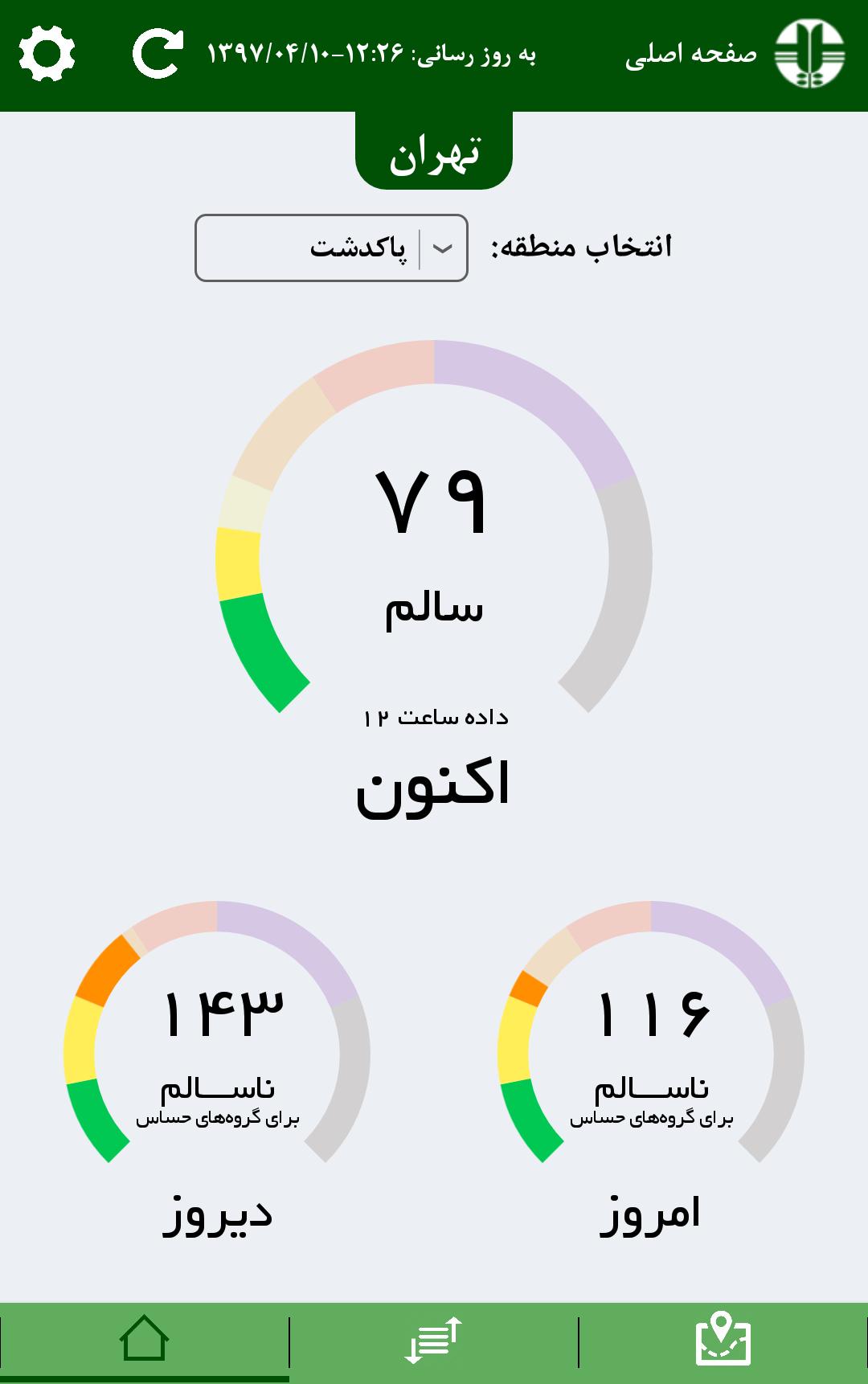 Índice de qualidade do ar de todas as estações ao redor do Irã é mostrado para qualquer província selecionada
