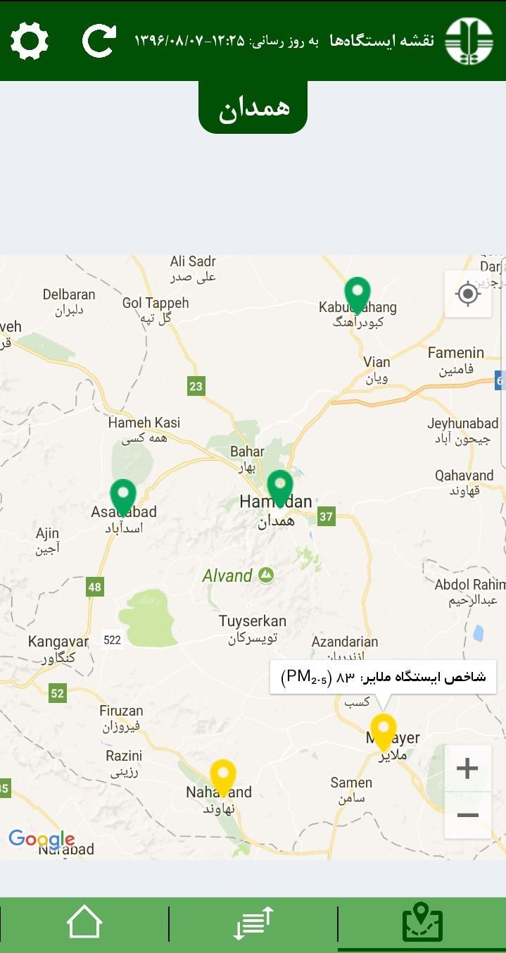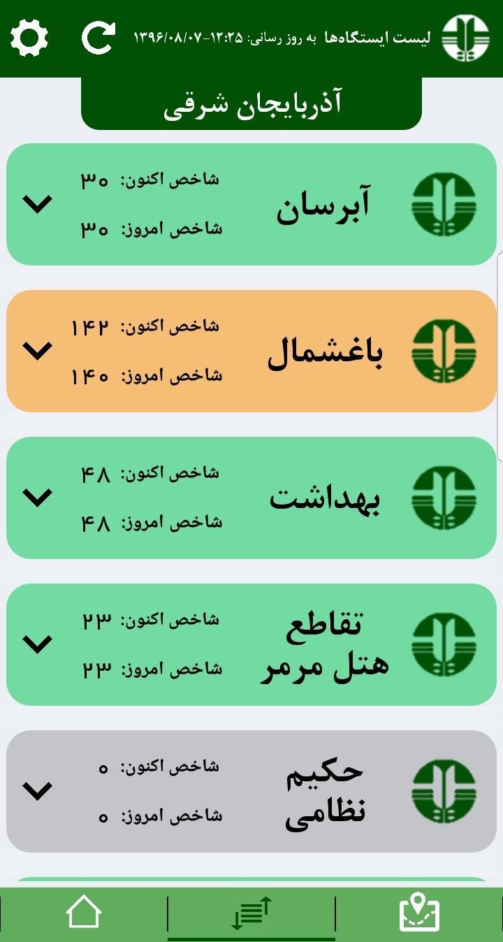 Índice de Qualidade do Ar (AQI) de todas as estações de DOE (Departamento do Meio Ambiente) em torno do Irã é mostrado para qualquer província selecionada nesta aplicação.