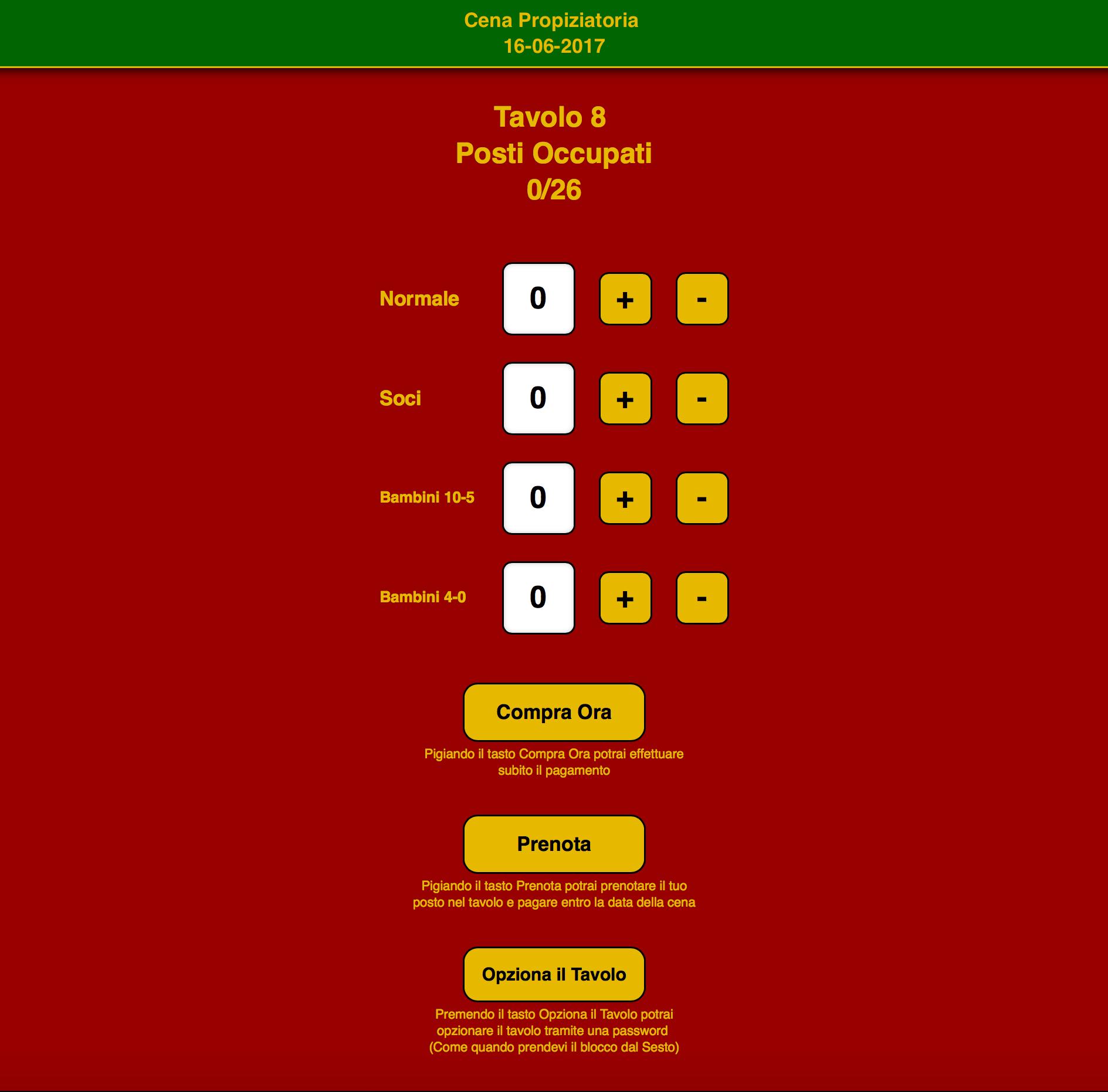 O aplicativo permitirá que você reserve seu lugar para as duas grandes noites da semana do estado verde do estado, o jantar propiciatório e o jantar de Maccherone. Você pode reservar e pagar seu ingresso imediatamente ou reservar e pagar mais tarde diretamente on -line ou no Fargo Di Pagitrone pelo gerente do Sestini Roberto.