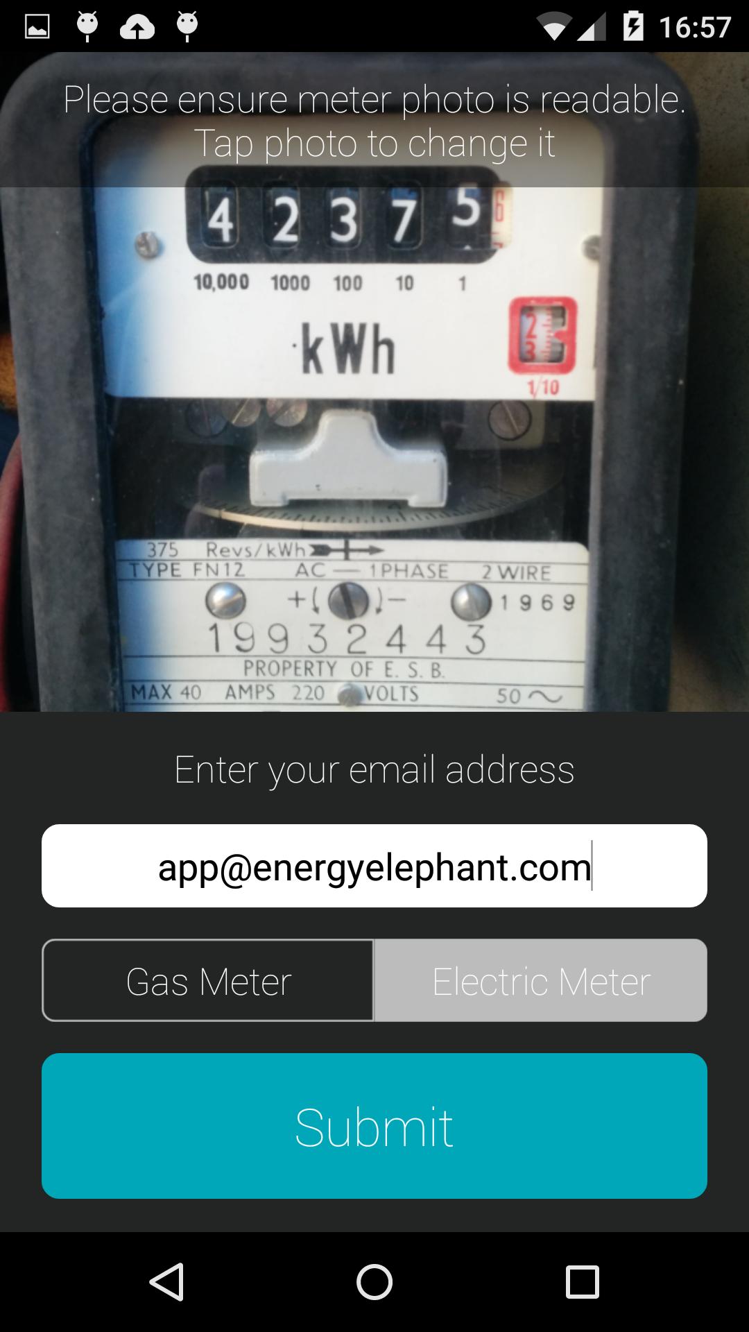 O aplicativo Energy Elephant é a maneira rápida e fácil de levar uma leitura de um metro de qualquer lugar do mundo usando seu telefone.