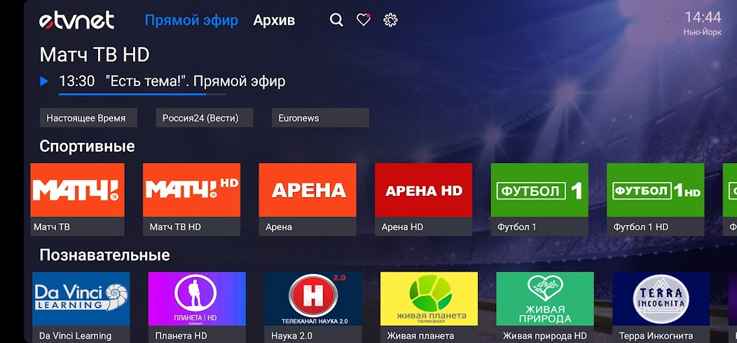 eTVnet permite que você assista a mais de 200 canais ao vivo, bem como a gravação dos canais por 2 semanas. Assista em qualquer um dos 8 fusos horários. Além de notícias, entretenimento, filmes, esportes e canais infantis, você encontrará a maior coleção de vídeos da eTVnet , onde todos os programas são mostrados sem publicidade!