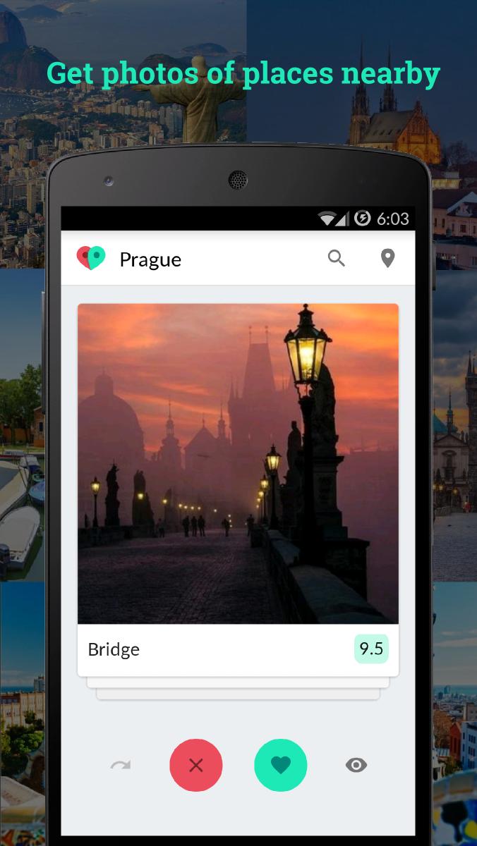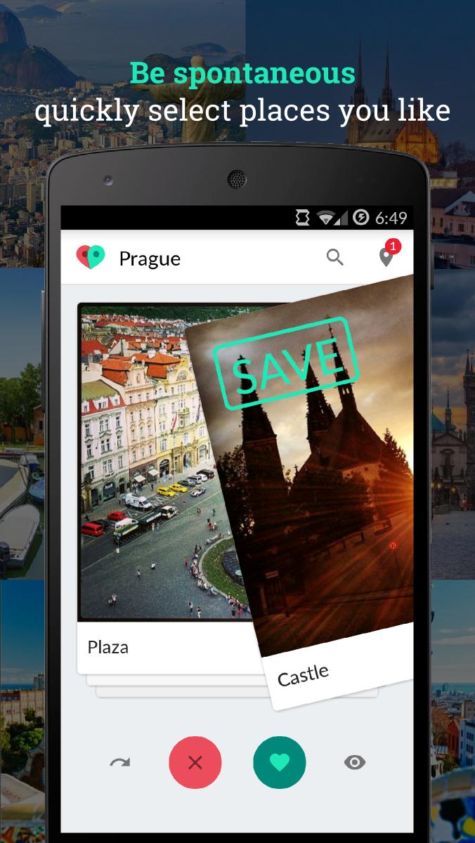 Descobrindo os lugares facilitados - apenas deslize fotos e obtenha um mapa para passear