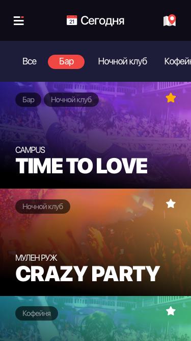 " Nightlifer " é um aplicativo anti-SOFA. Todos os usuários têm informações disponíveis sobre o pôster e os eventos para o próximo mês. Além disso, a oportunidade de pedir uma tabela e ver todos os meus estabelecimentos! Você pode escolher uma instituição por sua classificação, ver análises e, é claro, deixar a sua. Além de tudo isso, você pode concordar com antecedência uma aventura noturna com seus amigos no próprio aplicativo ou encontrar uma companhia de pessoas fascinantes para a noite. Não perca tempo, faça o download e planeje sua noite agora!
