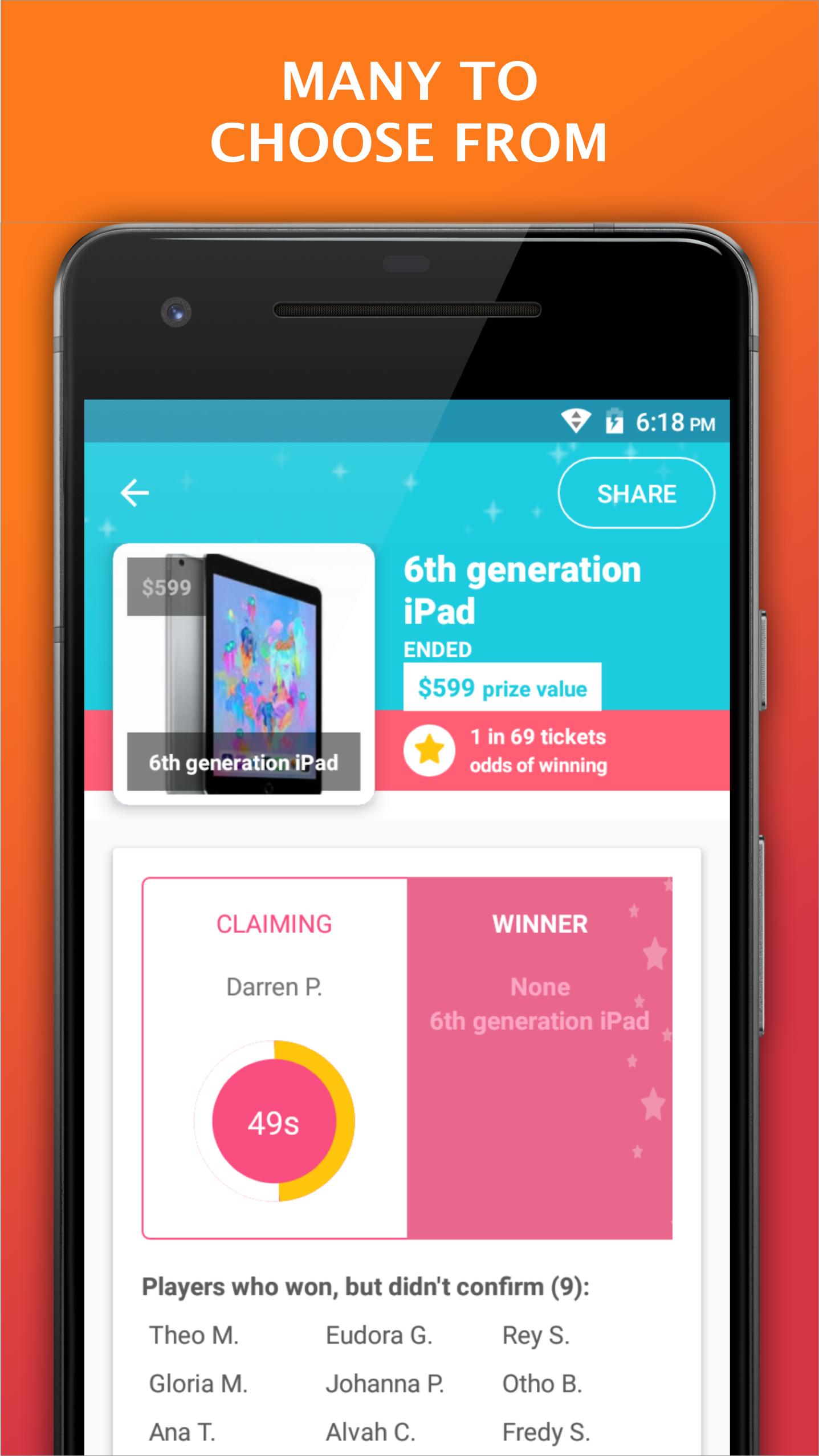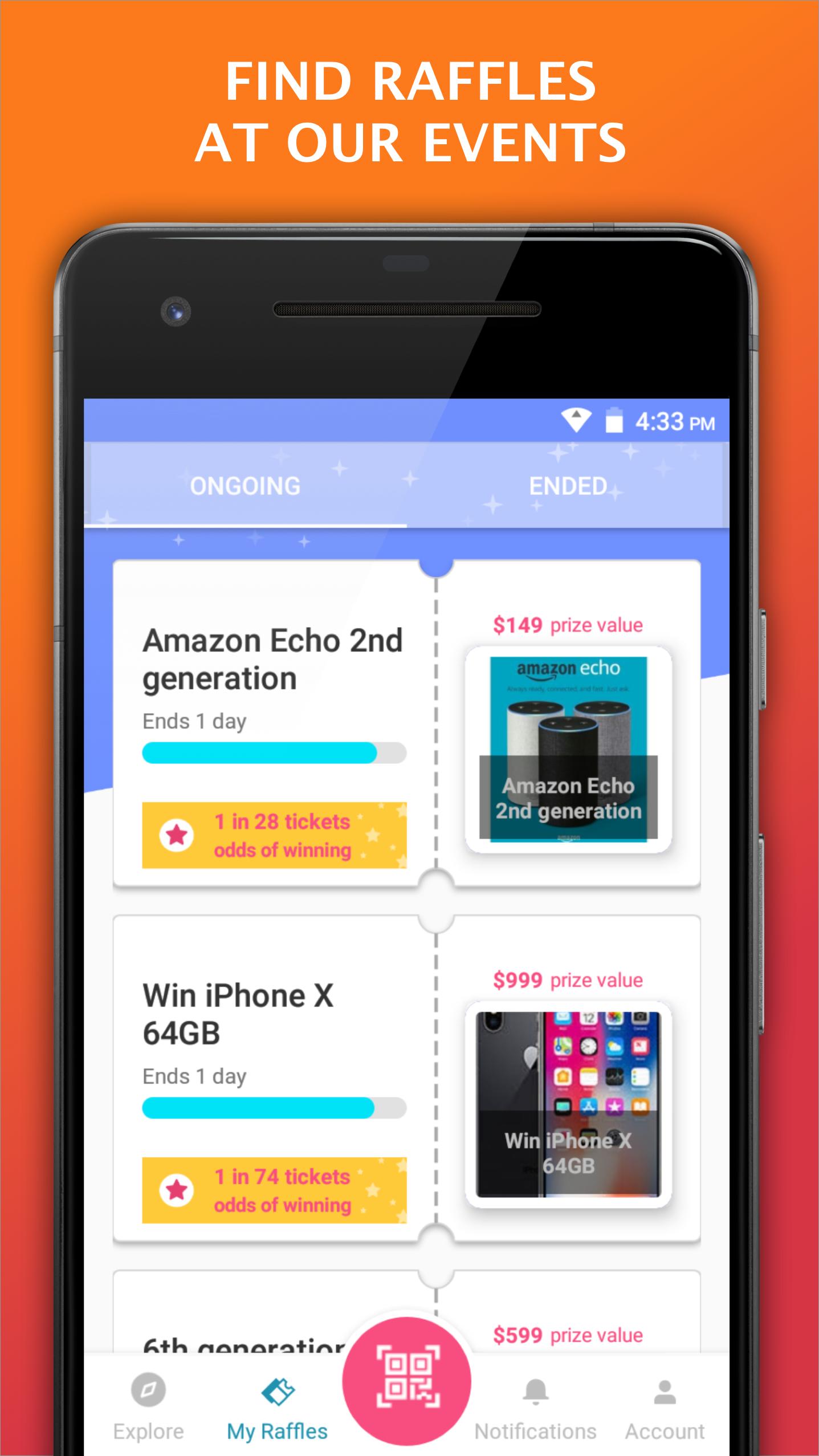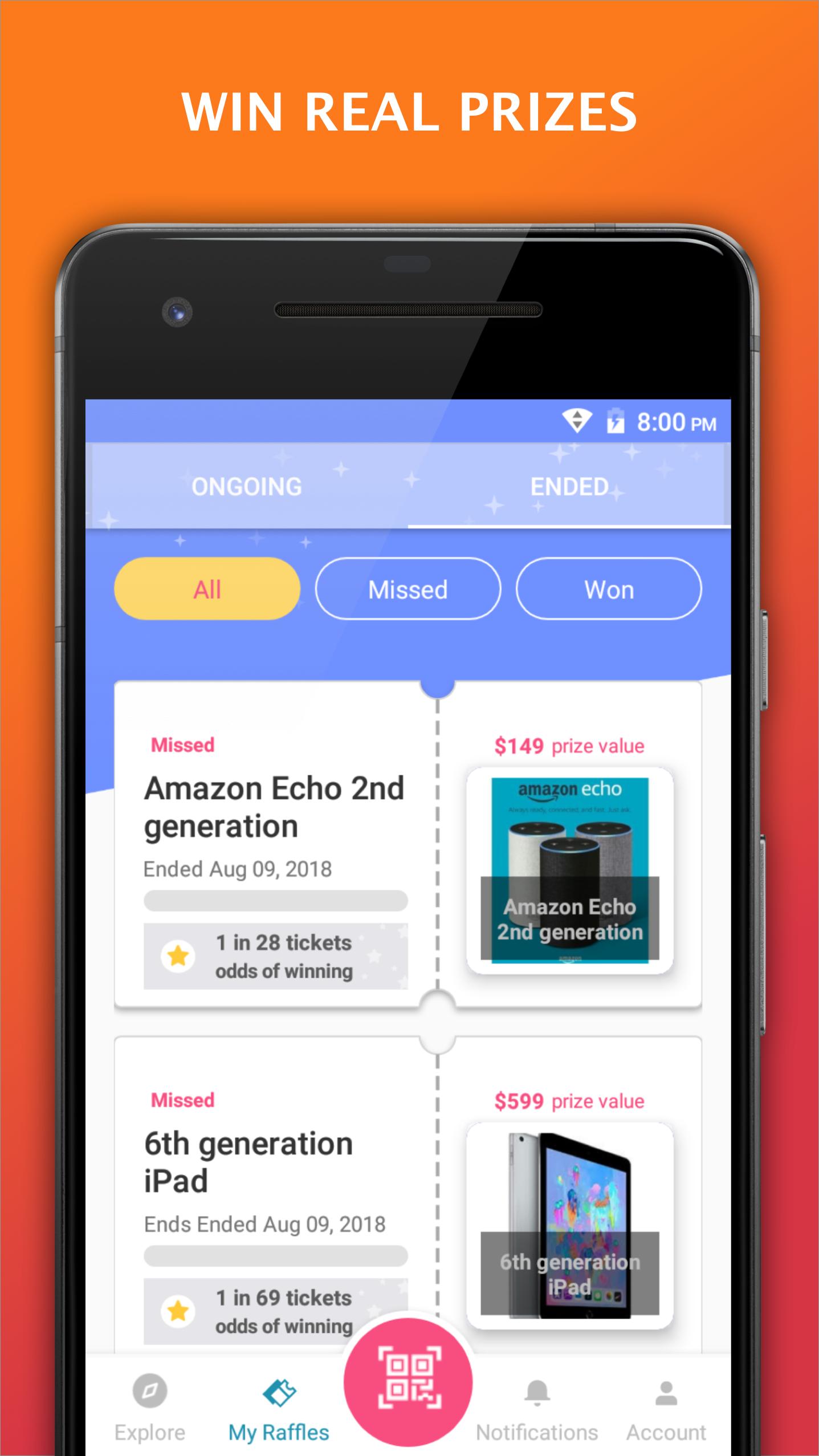 Rastreie as entradas do seu sorteio e os vencedores de alerta digitalmente diretamente do seu telefone.