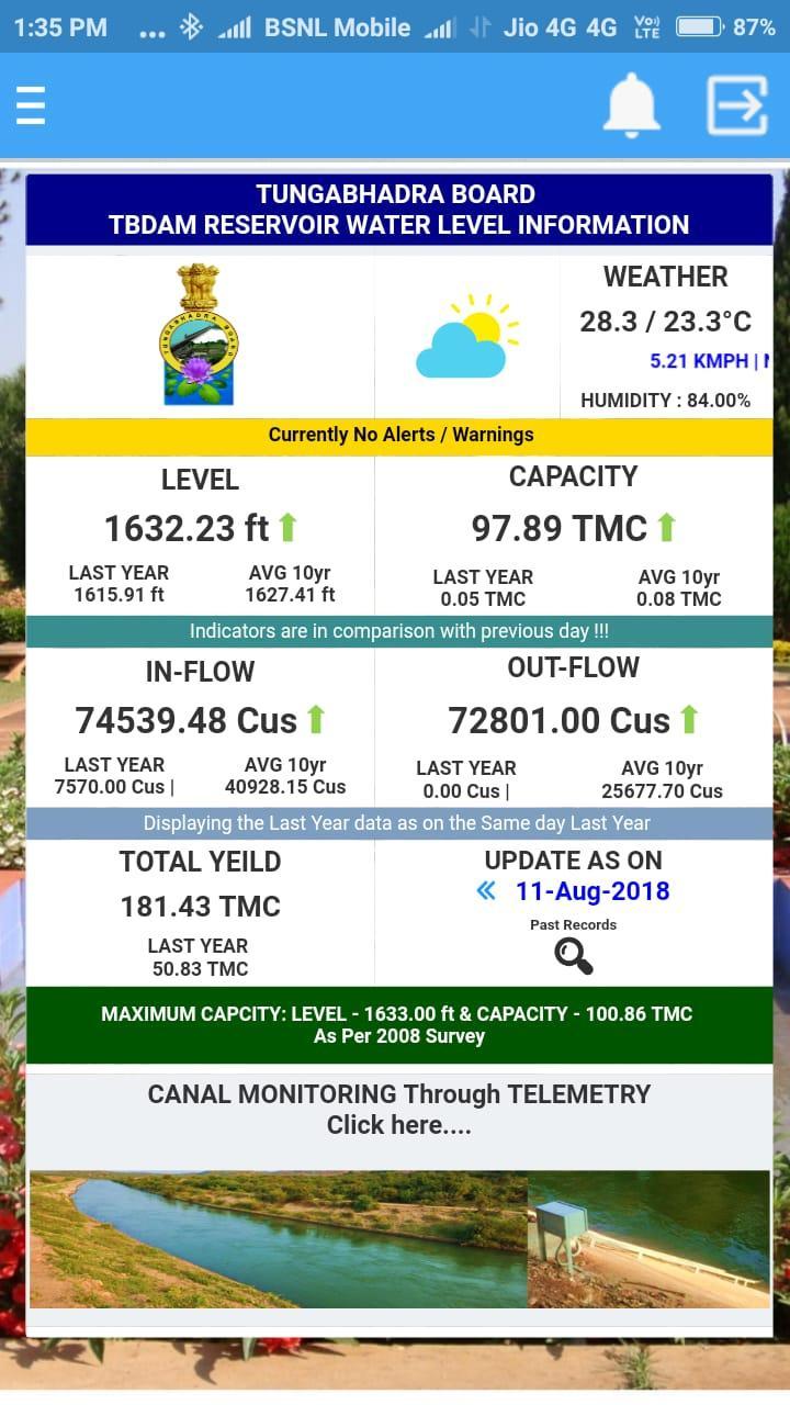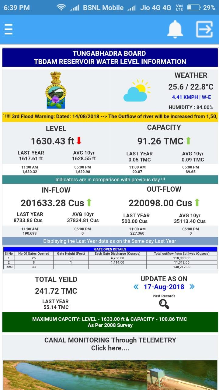 Tungabhadra Project Live - TB DAM Informações no nível da água, aplicativo oficial do TBDAM