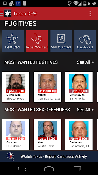 Com o aplicativo móvel Texas DPS , você pode explorar facilmente o registro de agressores sexuais do estado, as listas mais procuradas do Texas 10 e muito mais.