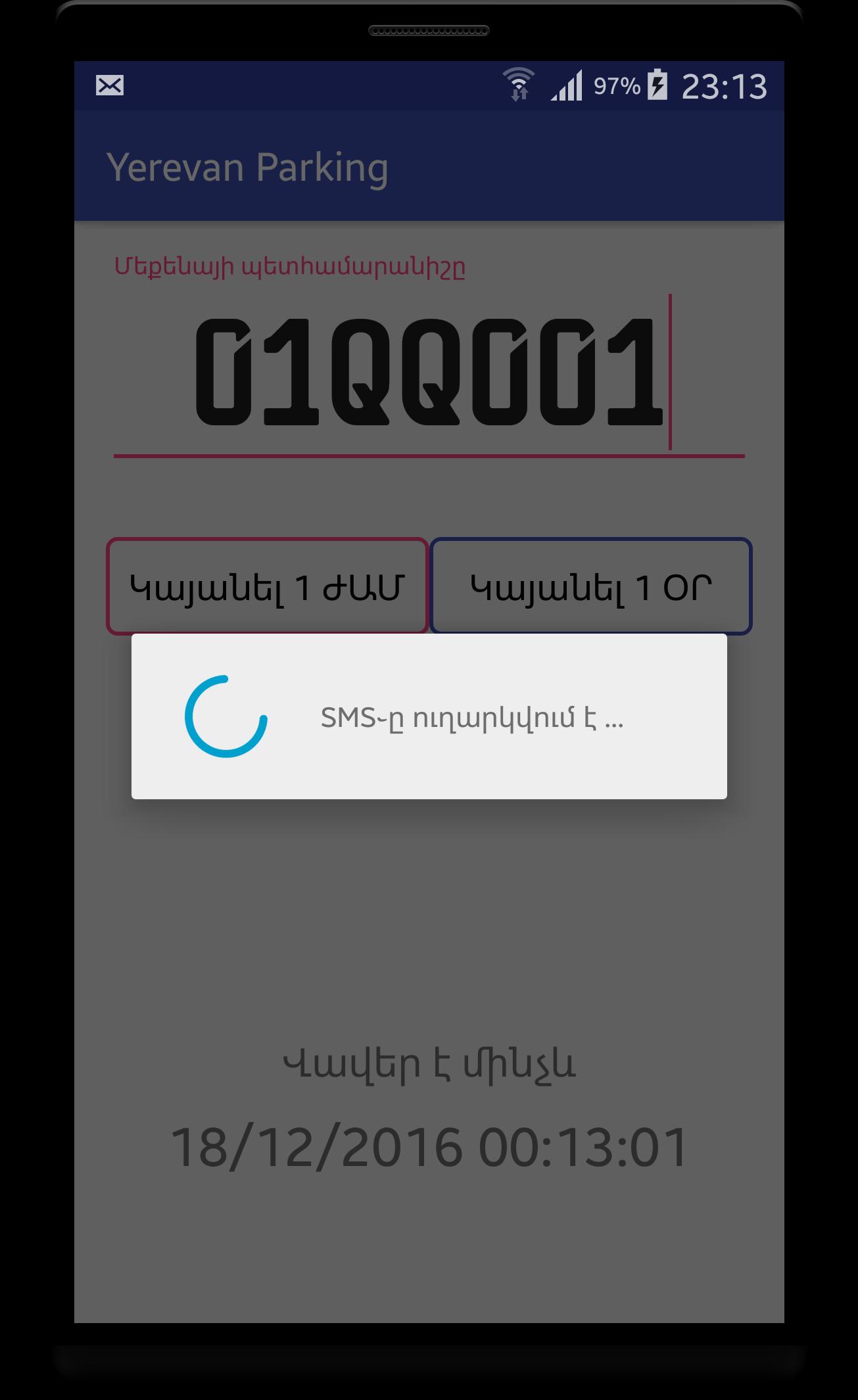 -> quickly send SMS to "Parking City Service" LLC for allowing you to park your car in Yerevan