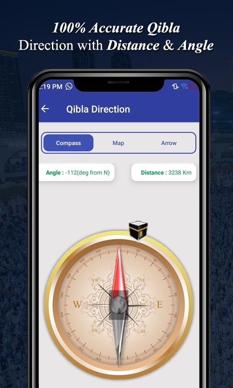 ✓ Qibla direction with compass animation helps finding qibla direction in