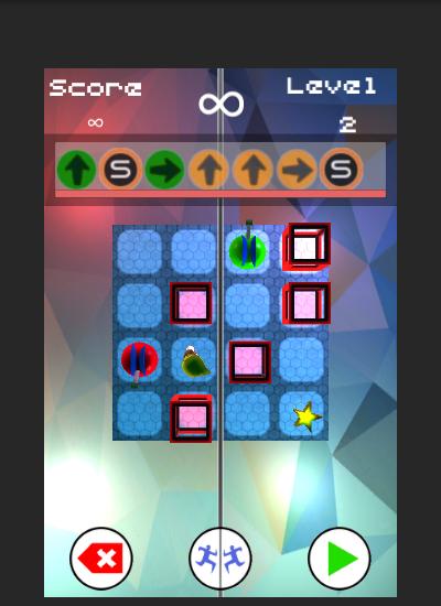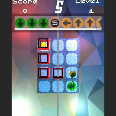 Solve puzzles of increasing difficulty by moving your character to the 'star', or end. Reflector uses 'delayed input', meaning movements won't be preformed until the 'play' button is pressed. This forces the player to think out all of their movements well in advance.