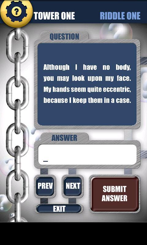 Welcome to Riddle Towers. Each game tower contains 10 original and perplexing riddles. You'll have to solve each one if you want to reach the next level and beat the tower. Use intellect, lateral thinking and brain muscle to solve the questions.