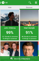1Mind дает вам список заказа людей, которые больше всего похожи на вас. Например, Боб, как и вы, на 94%, Джилл, как и вы, на 91%, а Рик, как и вы, на 88%. Люди в списке и порядок могут меняться каждый день, потому что все больше людей присоединяются 1Mind , а люди играют больше игр, которые выражают свои интересы.