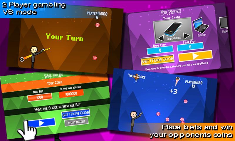 Он надоел конфеты и убить ее. Помогите своему наряду снять все цели конфеты в долине и разбогатеть монетами одновременно. Супер простые элементы управления и привыкание 1 или 2 режима игрока. Битва за монету в режиме азартных игр и купите все вещи своей мечты - автомобиль, самолет, даже купит землю !! Просто проведите наемного, чтобы нацелить свой мяч, и отпустите в огонь. Попробуйте больше ударить с 1 выстрелом. Теперь иди взорвать конфеты !!!