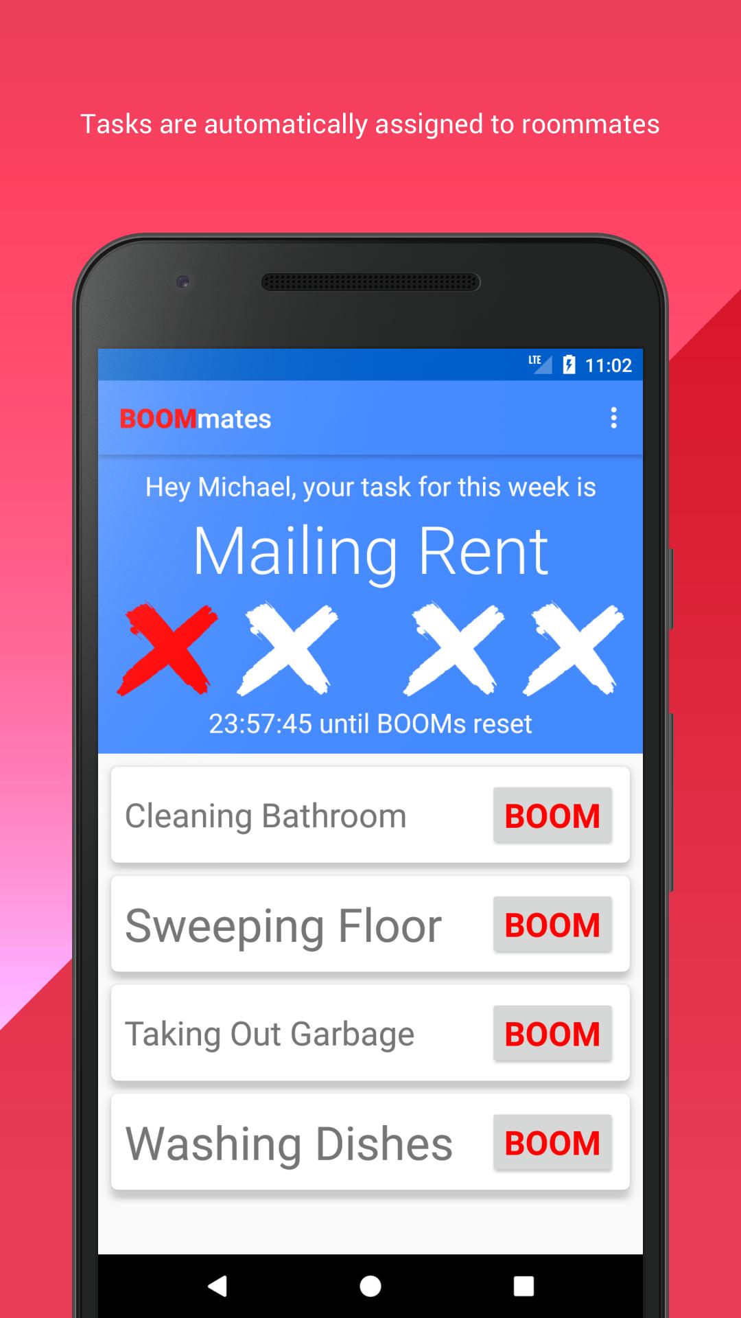 • Попрощайтесь с вашим рутинным колесом! BOOMmates анонимно назначает домашние соседи по комнате и автоматически вращает их еженедельно.