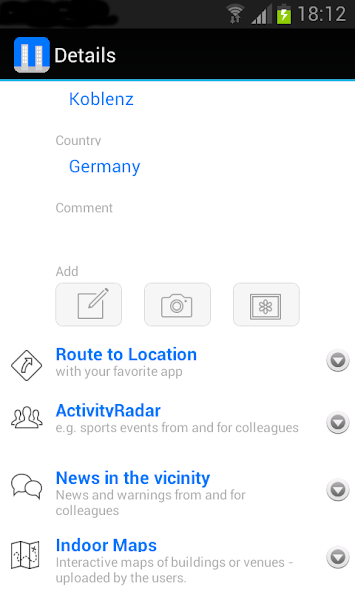 - Фотографии, файлы, сообщения и виджеты по местоположению (внутренняя компания)