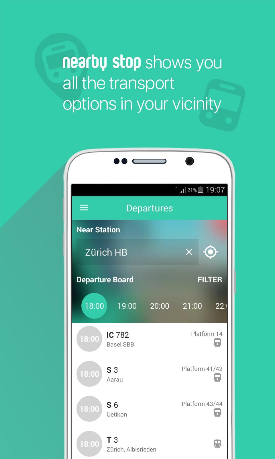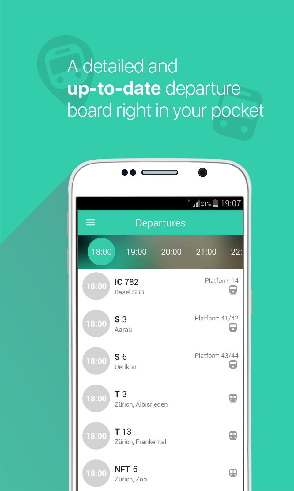Наше приложение охватывает всю швейцарскую сеть общественного транспорта (поезда SBB и местный транспорт). Он также работает в остальной части Европы, хотя для некоторых стран он может не охватывать каждый вариант общественного транспорта.