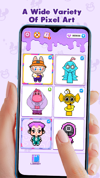 «Широкий выбор изображений пиксельных искусств для цвета, включая животных, транспортные средства, еду и многое другое. В частности, знакомые персонажи, такие как синие монстры, монстры клоуна, улыбающиеся кошачьи монстры и принцессы ... все присутствуют в этой художественной игре.