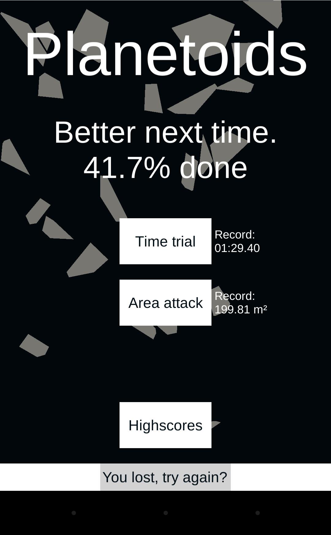 Time Trail: Попробуйте уничтожить все 10 Planetoids как можно быстрее.