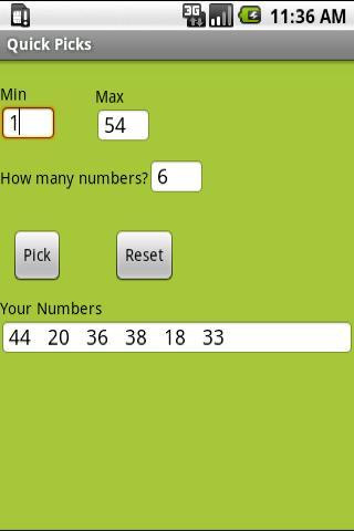Quick Picks будут генерировать произвольное количество случайных чисел, с указанным пользователем минимум и максимумом.