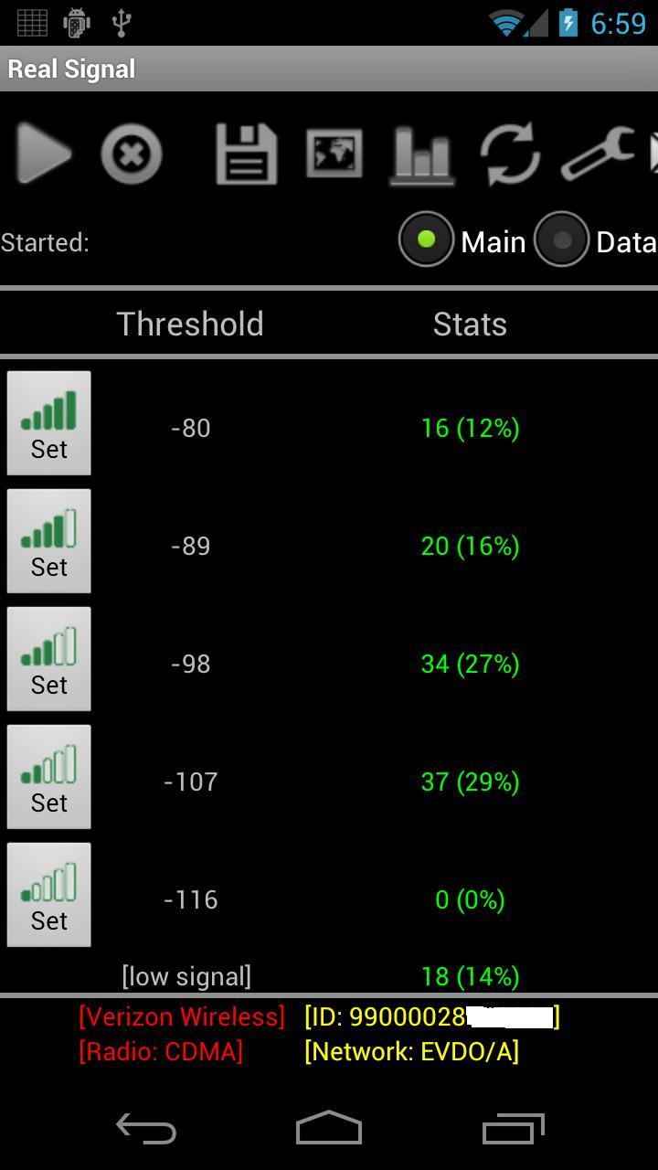 Я включил общий CDMA и GSM-шкал GSM, который хорошо работает для устройств Samsung и HTC (возможно, также другие), но сигналы Motorola кажутся отличными от других поставщиков. Вы можете использовать по умолчанию и отрегулировать пороговые значения для правильного отображения 5-барно-сигнального графика в ваших уведомлениях, или вы можете использовать встроенный алгоритм порогового сигнала Real Signal для установления 5-х срядочных диапазонов на основе прочности вашего зарегистрированного сигнала. Чтобы использовать это для своих лучших способностей, убедитесь, что вы калибруете Real Signal , пройдя через известные слабые и сильные области сигнала, прежде чем применять (автоматические) пороговые значения сигнала. Как только вы получите некоторые приличные и точные пороги, направьте их по мере необходимости или оставьте их такими, какие они есть. Это ваш выбор!