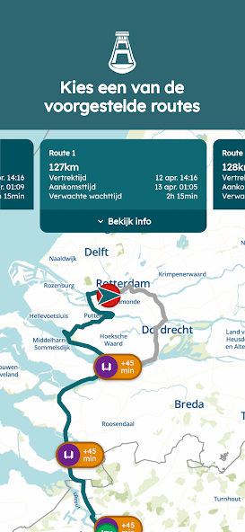 RiverGuide имеет национальное покрытие, а для порта Роттердам, в частности, существует обширная информация о причале, включая занятость, объекты и указание на опасные вещества.