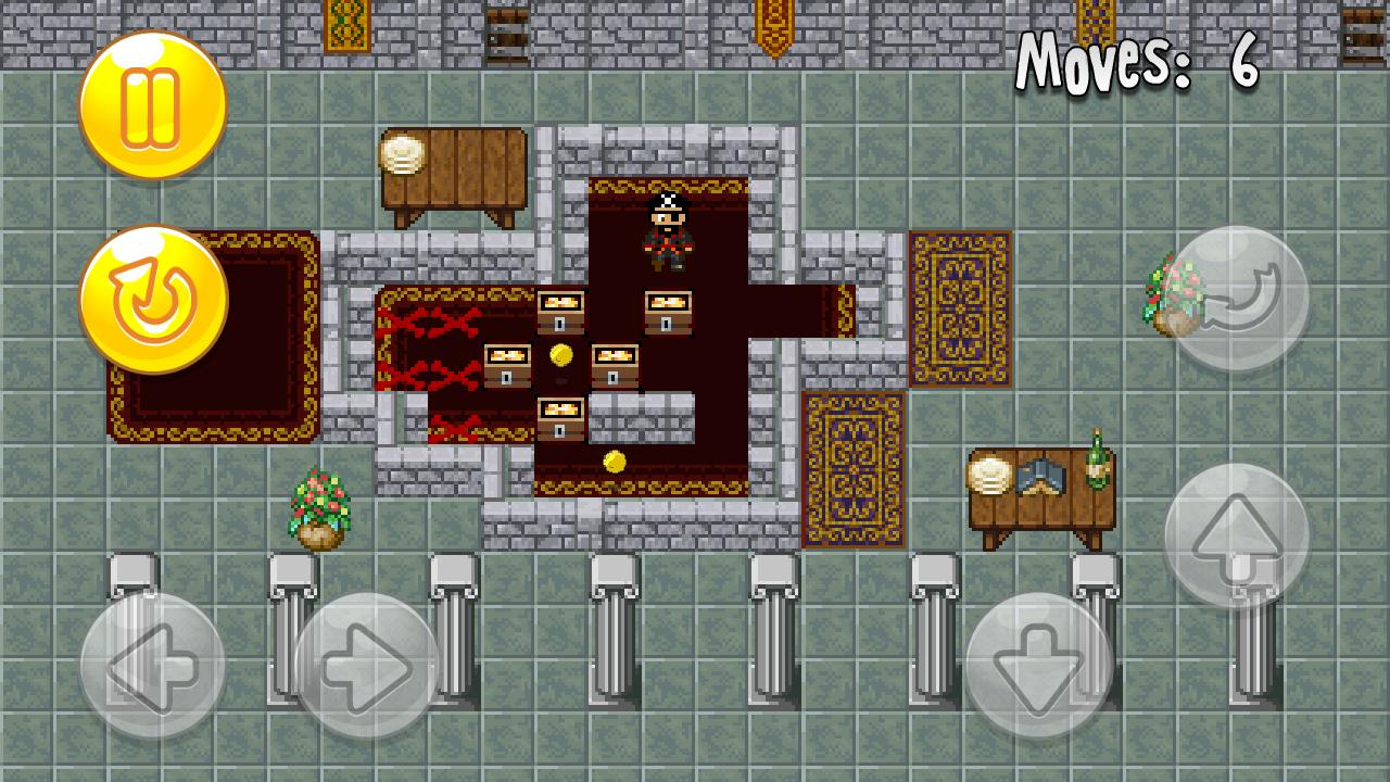 Sokoban Of Pirate - Помогите хитрому пирату скрыть украденное сокровище. Переместите сундуки, полные золота в лабиринт и спрячь их. Используйте свою логику, чтобы завершить интересные уровни этой игры Android. Помните, что вы можете перемещать только по одному сундуку за раз. Пират также не может вытащить сундук за собой, он может только толкнуть его вперед. Не забудьте собрать все золотые монеты, чтобы получить максимальные очки. Переместите сундуки вдоль кратчайшего маршрута в места, отмеченные красными крестами.