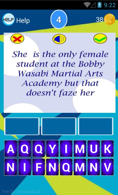 Существует также кнопка справки в верхней части экрана слева, чтобы найти правильное слово в игре. Если вы можете ответить на вопрос, вы получите дополнительные очки. Давайте сейчас получим много очков!