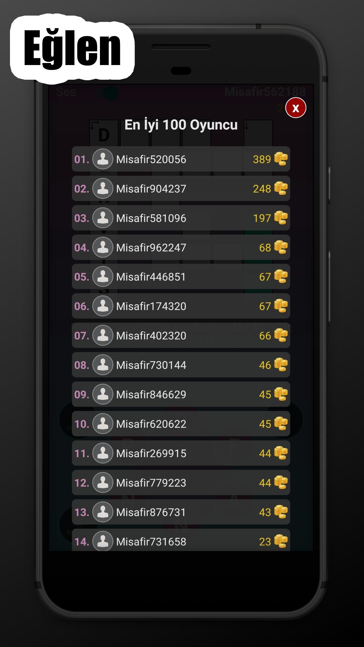 - Соревноваться с другими любителями головоломок, изучайте турецкие слова, которые вы никогда не знали, улучшили свой родной язык и грамматику.