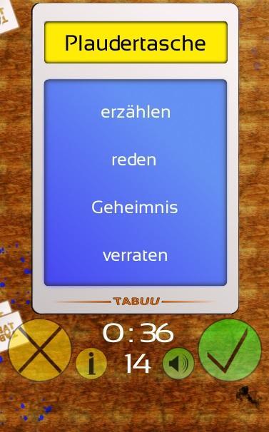 - Слово предложения: предложите слова, которые вы хотели бы сыграть, и, таким образом, поддержать дальнейшее развитие Табуу. Обновления всегда происходят, которые расширяют базу данных несколькими словами. Лучше всего отправлять ваши предложения непосредственно через приложение (красная кнопка в меню) или через страницу Tabuu Facebook!