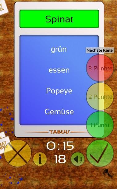 - 3 уровня сложности: Табуу подходит для всех. В то время как игра работает, вы выбираете каждую новую карту и поэтому можете решить для себя, хотите ли вы 3 -балльную карту, или достаточно ли времени только на один пункт.